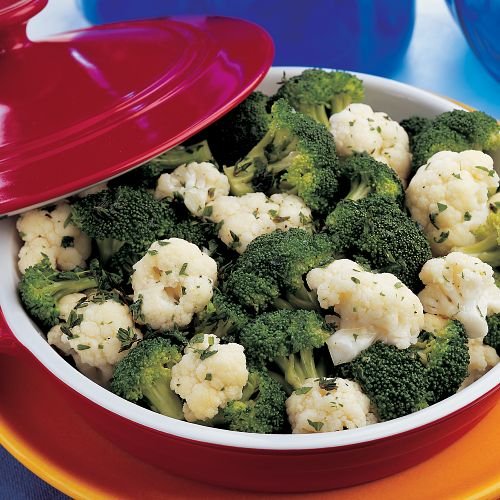 Omaha Steaks , This tantalizing combination of broccoli florets and cauliflower are blended with a splash of roasted garlic and herb oil for a delicious, light flavor. It's the perfect side for any main course. Just heat and serve. ...
